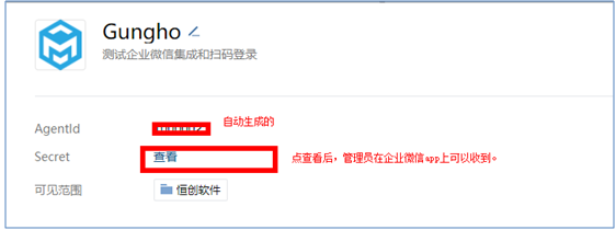 5、得到應用的AgentId、Secret