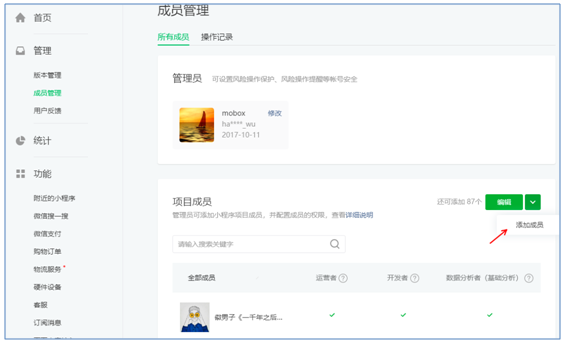 2、設置小程序管理員