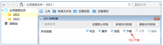 公司資質文件\2021 文件夾,里面引用的文件,不能下載,只能瀏覽 (因為引用文件的權限來自其原始文檔柜里面的權限設置,與當前文件夾權限設置無關)