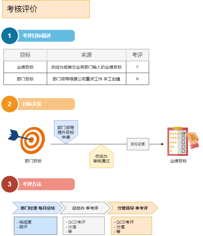 • 若是業(yè)績目標或重點工作交辦分解到部門,這些目標就必須考核